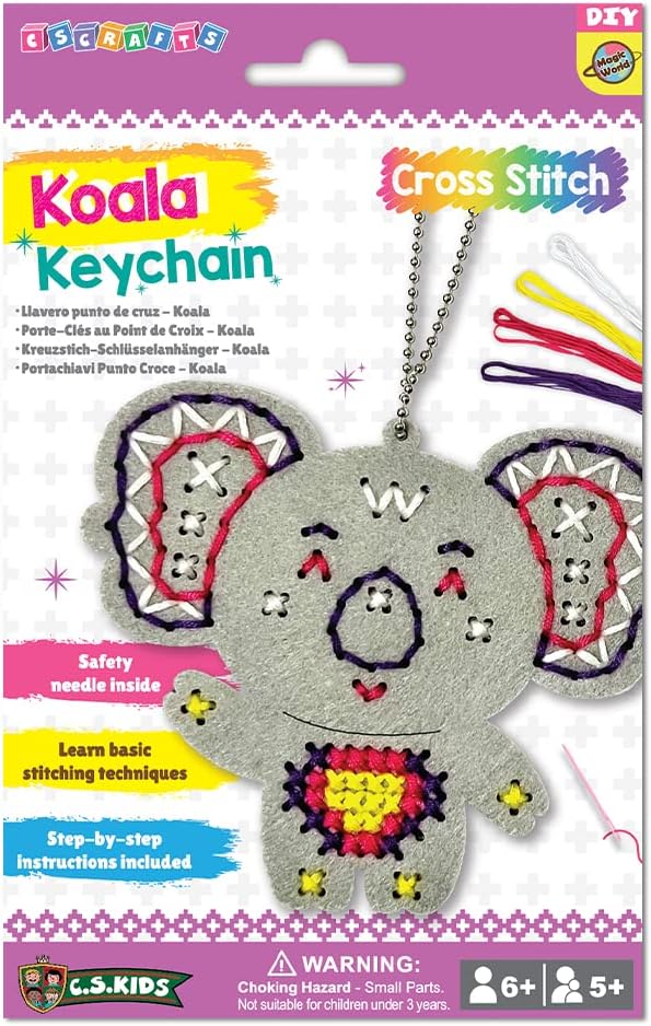 Kids KC08 My Koala Keychain, First Sewing Arts & Crafts Gifts -Crafting Keychain | Educational DIY Cross-Stitch for Kids